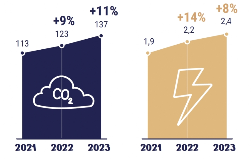 Les émissions de gaz à effet de serre de ces centres de données ont progressé de 11 % en 2023, et s’établissent ainsi à 137 milliers de tonnes d’équivalent CO2 (eCO2), soit 77 allers-retours entre Paris et New York en avion. En 2022, leurs émissions de gaz à effet de serre avaient déjà augmenté de 9 %.